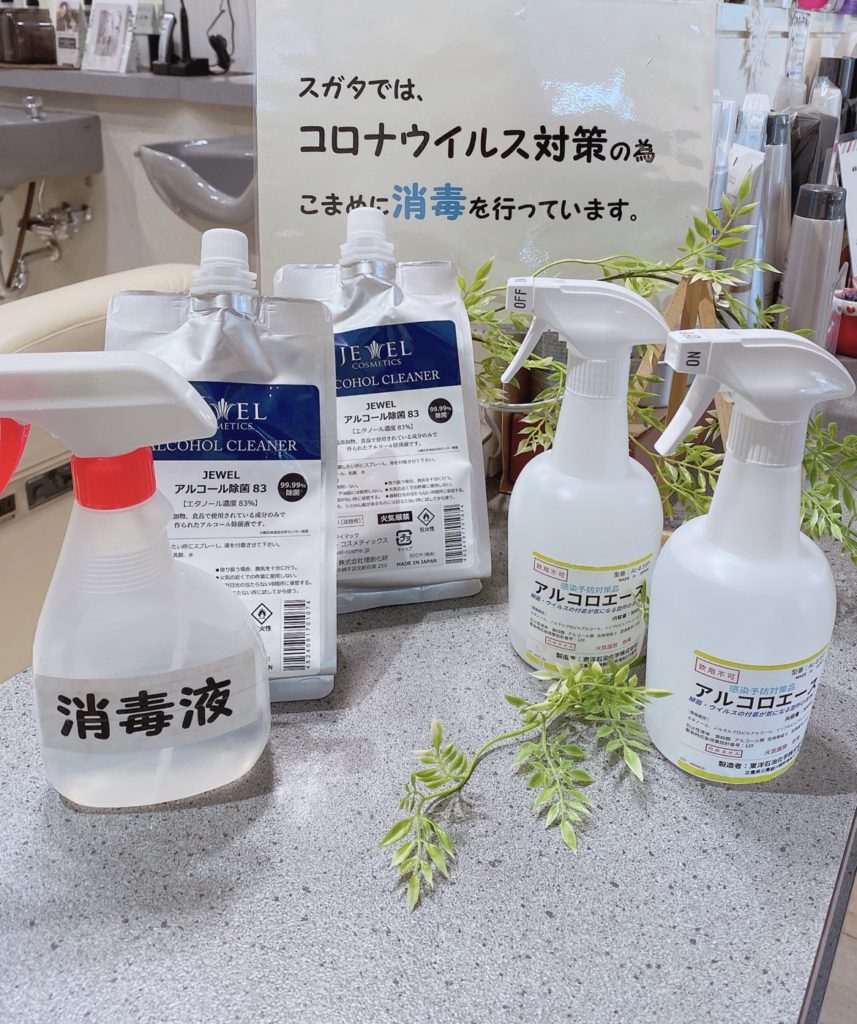 スガタでは、こまめな消毒を徹底!! こまめな換気を行なっています!!