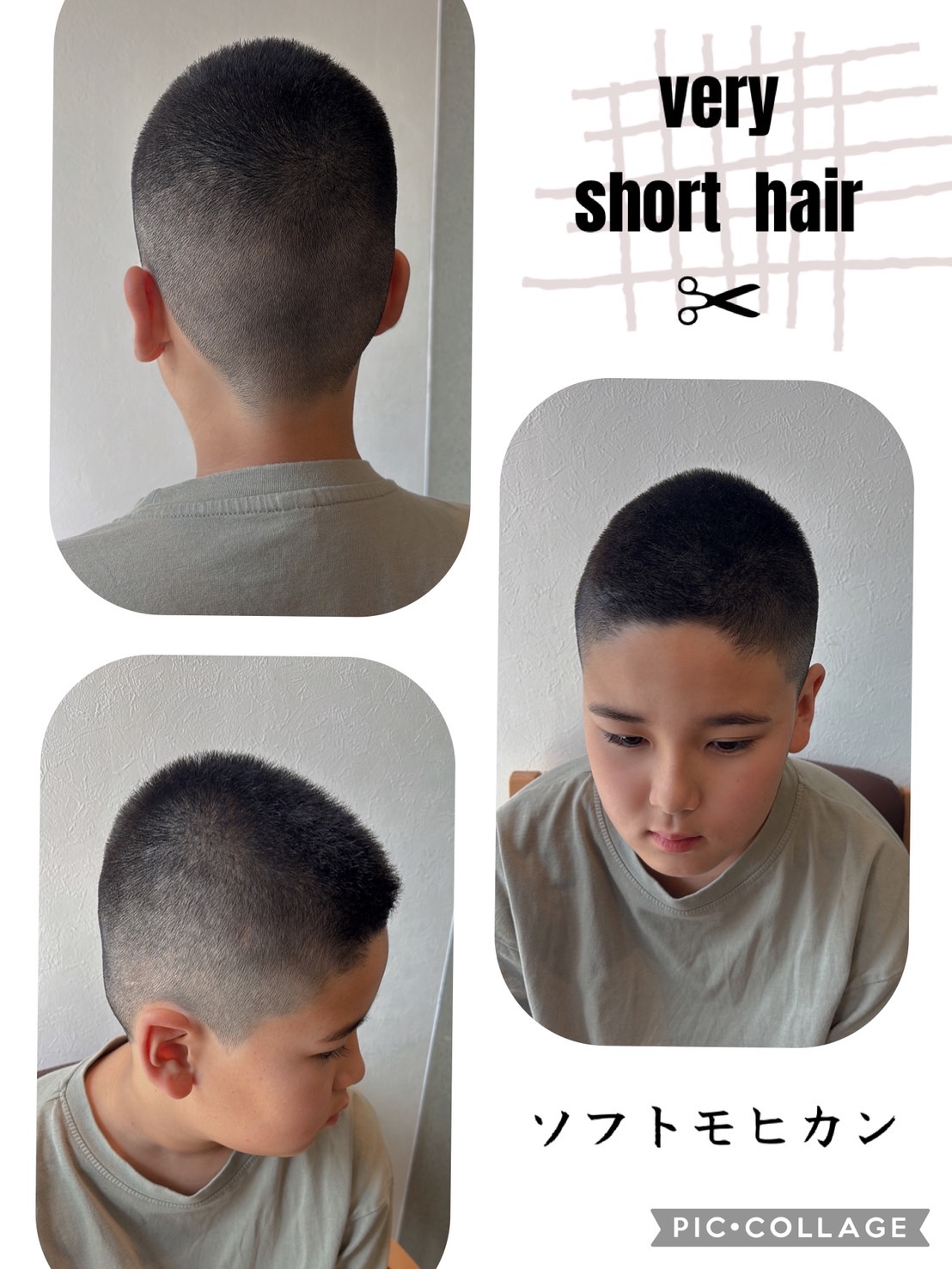 小学生のベリーショートの ソフトモヒカンスタイルです♪ 似合ってますね! 会う度にお話上手なお兄さんになっててほっこりします♪♪ ソフトモヒカンは 短いスタイルが好きな方! 挑戦したい方にはおすすめです!